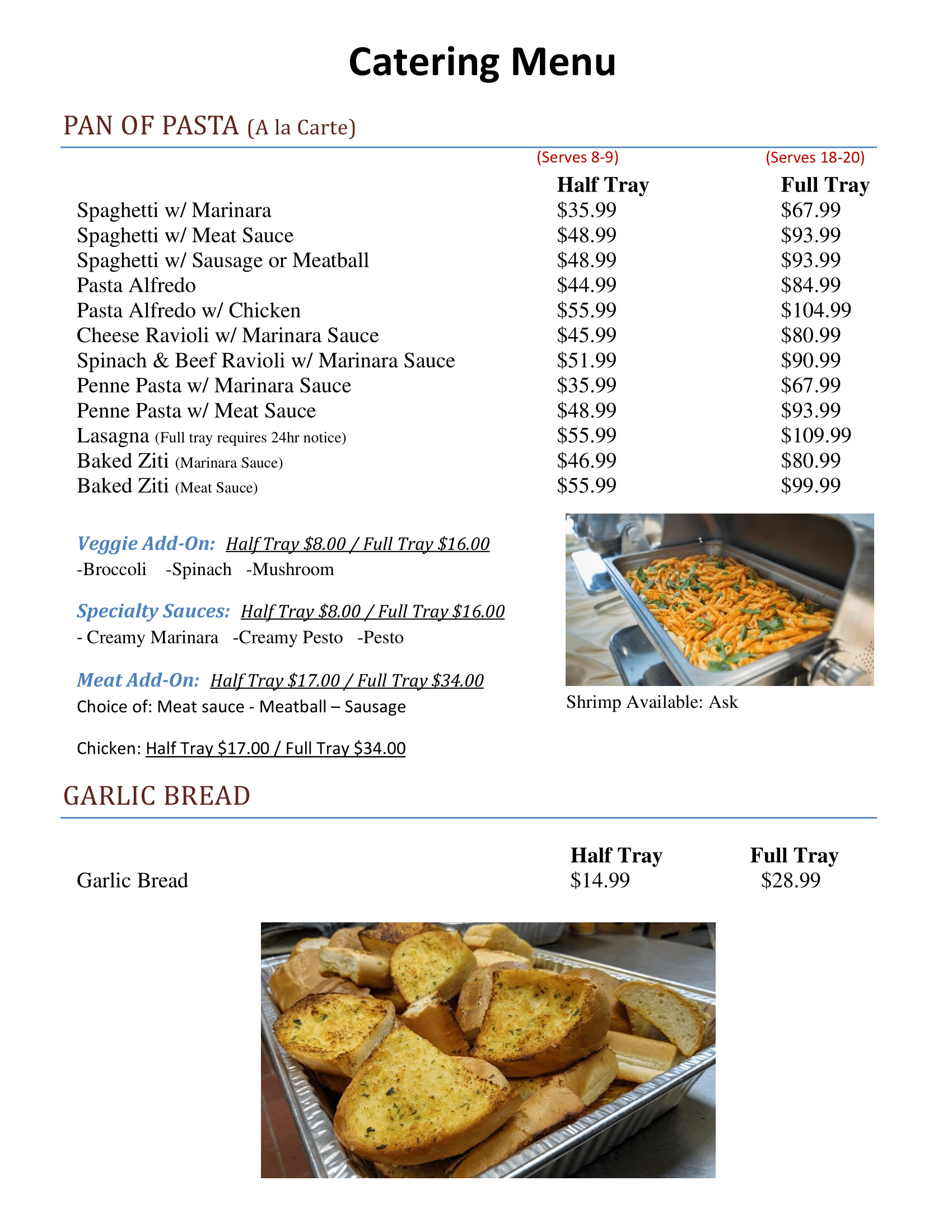 Alfredo, Pesto, Marinara, Creamy Marinara, Meat Sauce